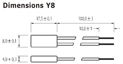 | max. breaking capacity: | 2,5 A cos Φ 1,00 / 250 V, 150°C, 3000 cycles 3,0 A cos Φ 0,45 / 230 V, 135°C, 3000 cycles 4,0 A cos Φ 0,45 / 230 V, 135°C, 2000 cycles 6,5 A cos Φ 1,00 / 120 V, 120°C, 100 cycles max. current value in reference to tripping resitor value (table-sheet: trip current/resistor value) |