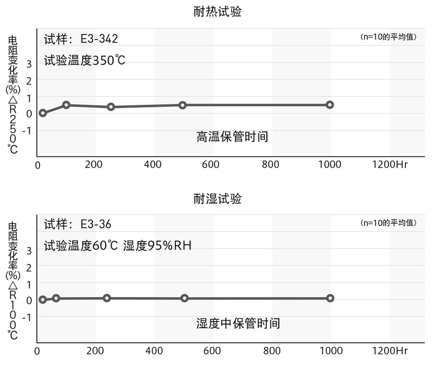 由于通過金電極將導線結合到熱敏電阻芯片、特性穩(wěn)定(PSB-S、NS、PL形熱敏電阻元件)。