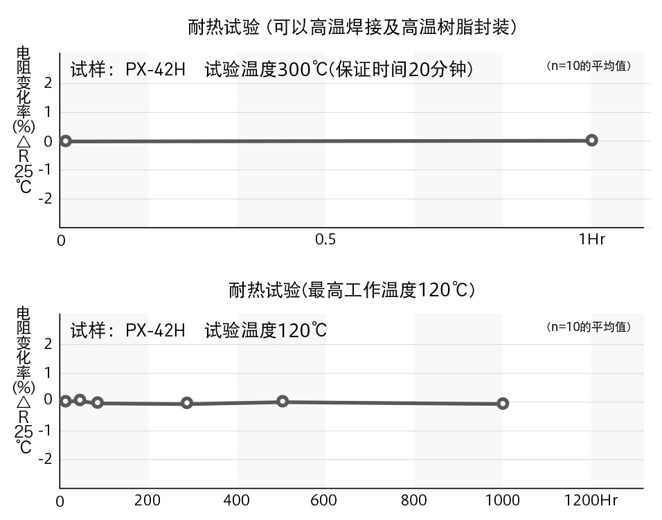 由于通過(guò)金電極將導(dǎo)線結(jié)合到熱敏電阻芯片、特性穩(wěn)定(PSB-S、NS、PL形熱敏電阻元件)。