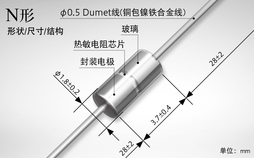 由于采用玻璃封裝、與樹(shù)脂封裝熱敏電阻相比、具有出色的耐熱和耐候條件性能、使用壽命更長(zhǎng)。