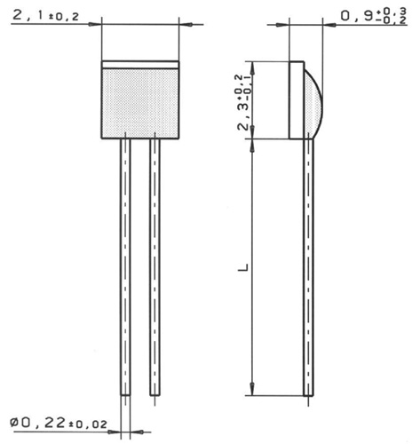 | LN 222 | 2.3 x 2.1 x 0.9 | 100/500/1000 | 溫度范圍(°C) -50至+400B -50至+300A |