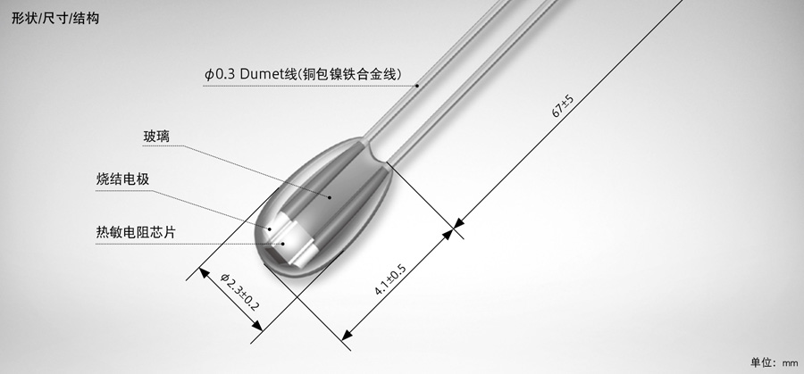 由于采用玻璃封裝、與樹脂封裝熱敏電阻相比、具有出色的耐熱和耐候條件性能、使用壽命更長。