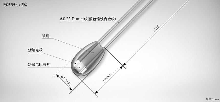 由于采用玻璃封裝、與樹脂封裝熱敏電阻相比、具有出色的耐熱和耐候條件性能、使用壽命更長。